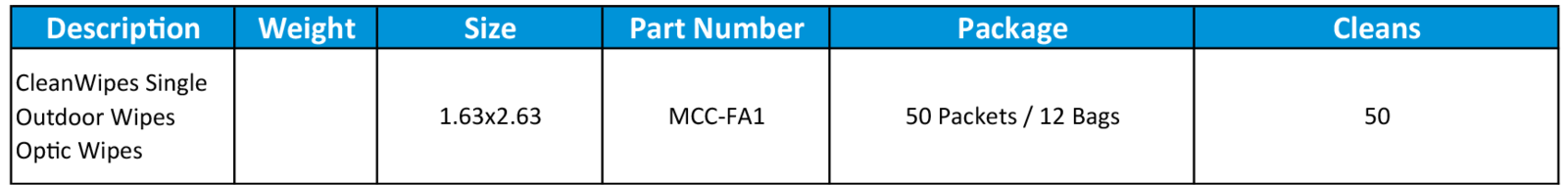 CleanWipes Singles Outdoor Fiber Optic Wipes